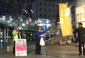 また、この総決起集会に先立ち、3月1日には大阪府域10か所で「一斉ターミナル街頭行動」も実施しており、約300人が参加した。各所では地元の連合大阪各級推せん議員も協力し、2017春季生活闘争の課題を訴えながら、チラシなどを配布した。