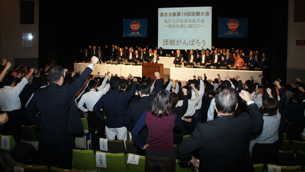 連合大阪は10月18日、大阪市内で第19回定期大会を開き、360人が参加の下、第31・32年度の運動方針を決定した。
