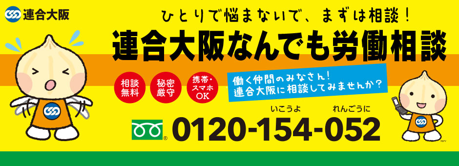 労働組合作り、組合加入、労働問題のご相談、働くことで困ったら今すぐ、連合大阪・労働相談フリーダイヤルへ。