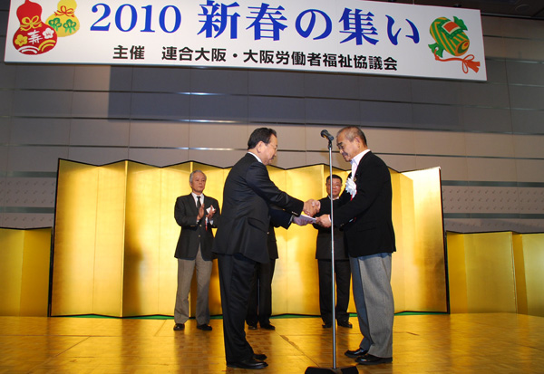 連合大阪と大阪労働者福祉協議会は1月7日、「2010 新春の集い」を大阪市内で開いた。会場には連合大阪の構成組織、地域・地区協議会の役員、大阪府内の各自治体首長、国会議員を始めとする各級議員、関係団体役員など700人が参加した。
