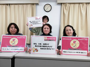 多くの在宅ワーク中の女性組合員の思いも込めて、少数精鋭でアピールします!